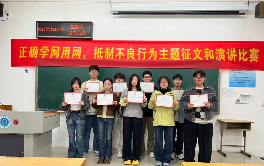 活动自启动以来,全校团员青年和团干部踊跃参与,围绕“正确学网用网,抵制不良行为”主题,结合自身学习生活实际,以文字和演讲的形式分享了对依法用网、理性用网、文明用网的理解与感悟。征文作品题材多样、内容真实、情感真挚,展现了青年学子在网络空间中的责任担当;演讲比赛选手精神饱满、表达流畅,通过真实案例和切身经历,传递了健康用网、传播正能量的坚定信念。