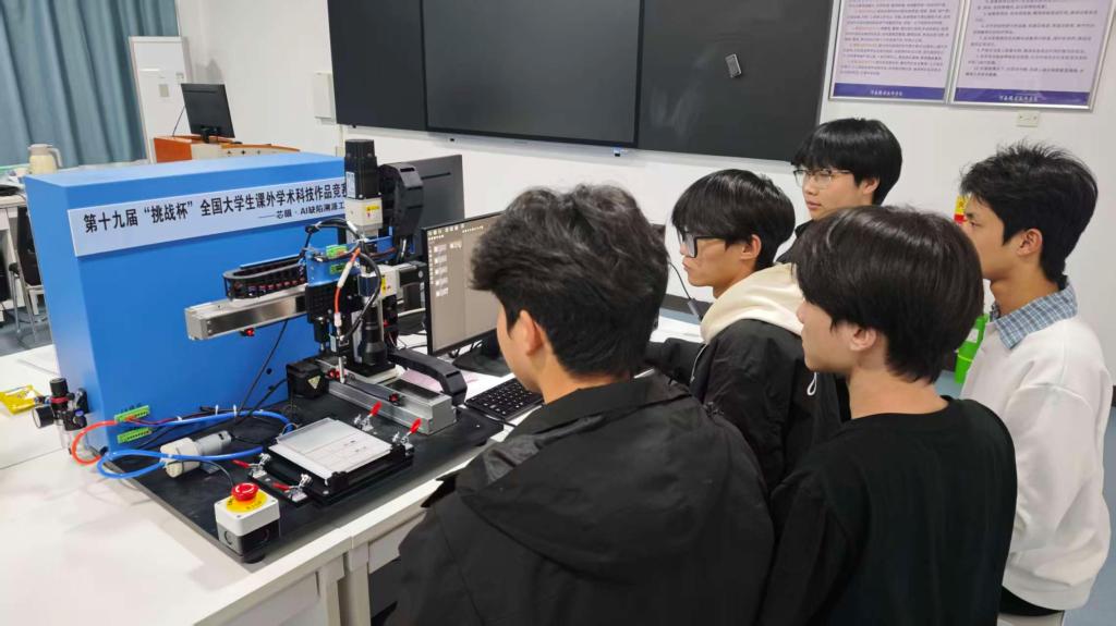 本次竞赛学校党委高度重视、多次调研,给予参赛团队关心指导、帮助鼓励。在现场终审答辩环节,学校参赛团队精诚合作,出色发挥,赢得评委专家好评。最终控制工程学院项目《芯眼·AI缺陷溯源工程》和《麦野清风——面向小麦机械收获粉尘污染的高效抑尘装备》分别荣获“人工智能+”专项赛国赛二等奖、主体赛国赛三等奖。