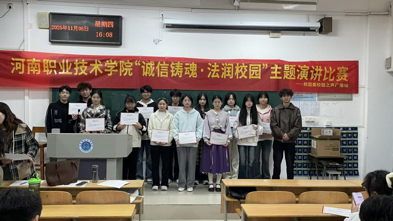 现场评委从主题立意、语言表达、现场感染力等维度进行公正打分,经过激烈角逐,比赛最终评选出一等奖1名、二等奖3名、三等奖5名,优秀奖17名。参赛选手纷纷表示,将以此次比赛为契机,争做诚信法治的坚定捍卫者和积极传播者,让青春在崇德守法中绽放绚丽光彩。