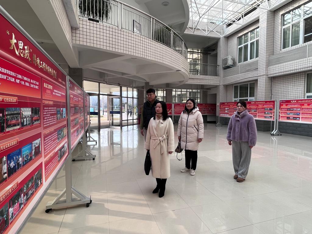 本次成果展系统呈现了2024年5月以来,学校在理论武装、党建引领、课程思政等多领域的育人成效。校团委展区以“思想引领铸魂、实践赋能强基、文化浸润养心”为核心,通过三级课程思政品牌资源体系、社会实践成果、校园文化活动等多维内容,集中展现了思政教育与青年成长同频共振的育人实践。参观人员认真学习各单位特色做法,围绕品牌活动打造、实践育人创新等展开交流。