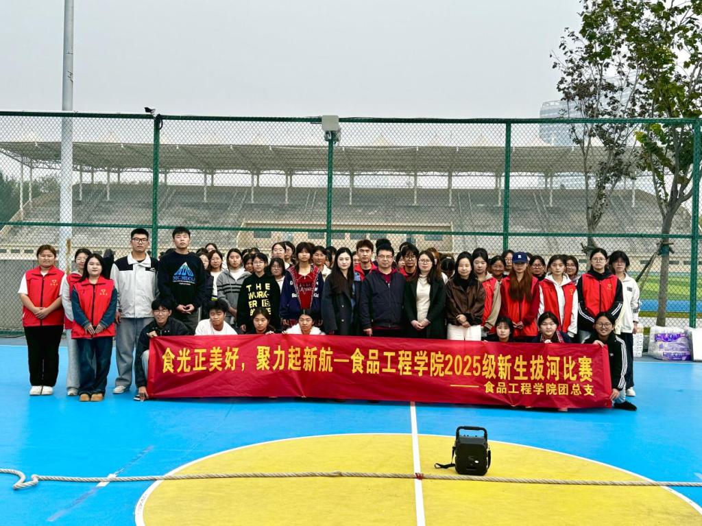 为促进新生交流,培育团队精神,10月30日下午,由食品工程学院团总支主办的“食光正美好,聚力起新航”新生拔河比赛在学校操场顺利举行,2025级各班级学生代表参加。该比赛以竞技为纽带,凝聚青春力量,展现了新一届学子的蓬勃朝气。